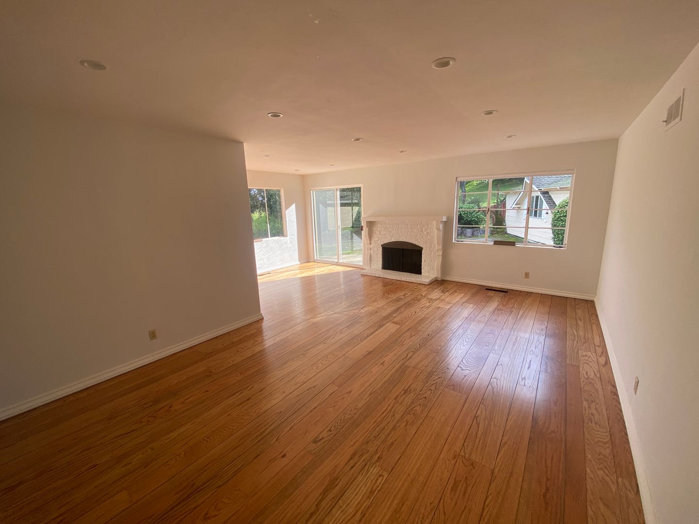 This well-maintained 3-bedroom, 2-bath home features a functional and inviting layout with beautiful hardwood flooring throughout. The main living space is bright and open, with recessed lighting, a wood-burning fireplace, and sliding patio doors to the backyard, creating a warm and comfortable gathering area with easy indoor-outdoor flow. A spacious family room/den offers additional flexibility for living or work-from-home use.